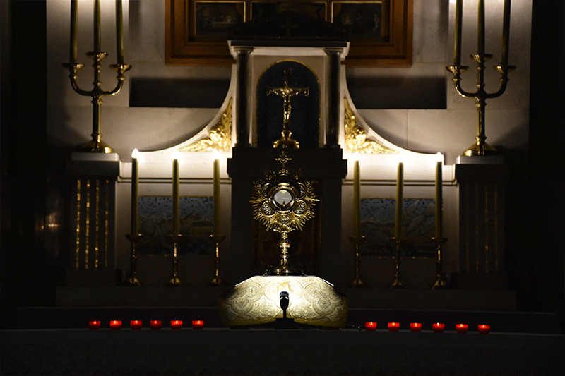 Vrhunac susreta bilo je euharistijsko klanjanje koje je potom uslijedilo u sjemenišnoj crkvi Presvetog Srca Isusova, a koje je bilo posvećeno molitvi za misionare diljem svijeta te za nova misijska zvanja. Kroz cijeli tijek misijske večeri i klanjanja izmjenjivale su se i glazbene točke, koje su izveli tamburaški sastav sjemeništaraca pod vodstvom prof. Ane Jazbec zajedno za pjevačima.