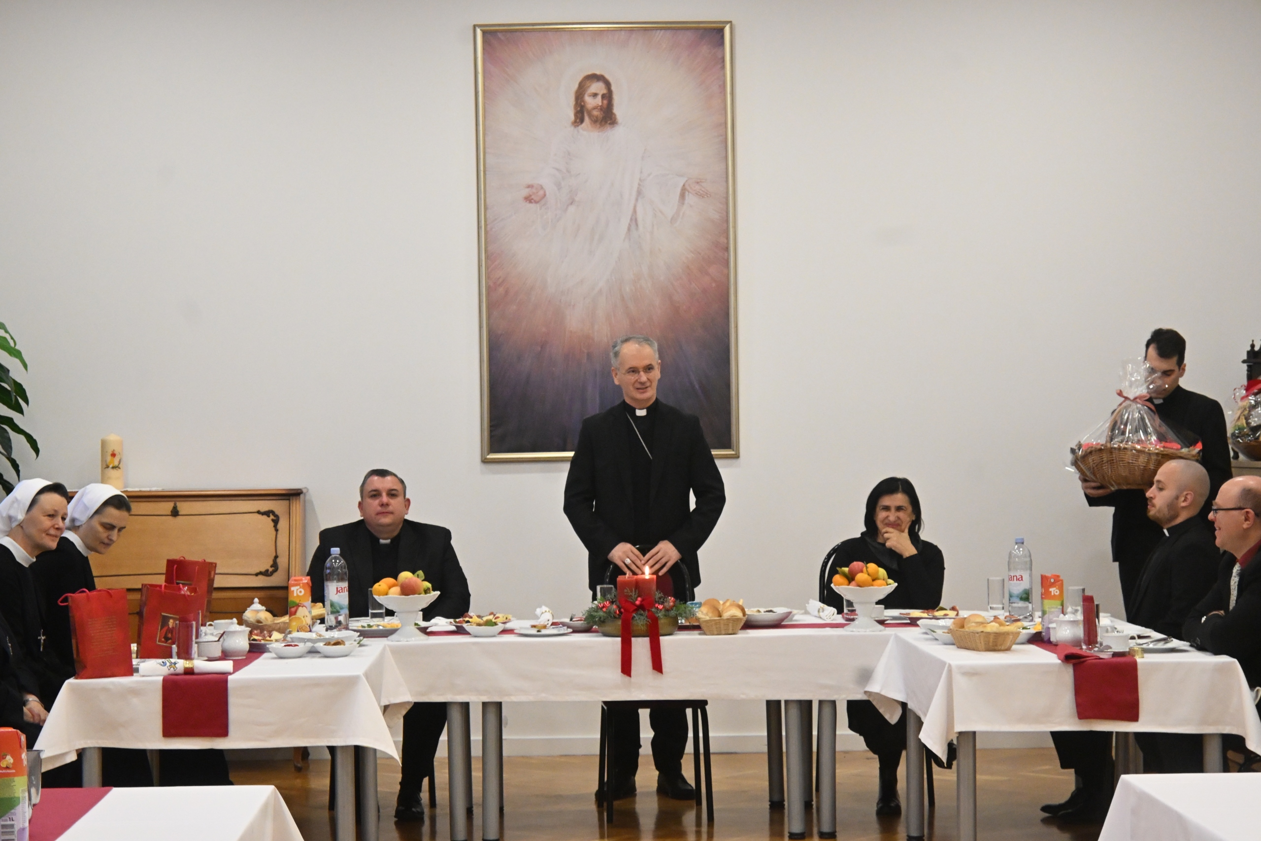 Nakon misnog slavlja nadbiskup Kutleša bio je i dragi domaćin zajedničkog doručka tijekom kojeg se zanimao za stanje sjemeništaraca u Gimnaziji i za život u Sjemeništu. U ime sjemeništaraca prigodnu riječ nadbiskupu uputio je generalni duktor Ivan Sičaja, a potom je uslijedilo i prigodno međusobno blagdansko darivanje.