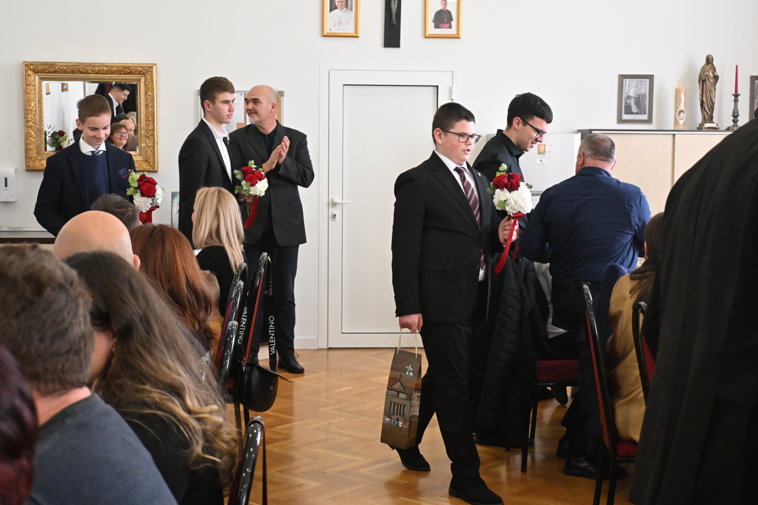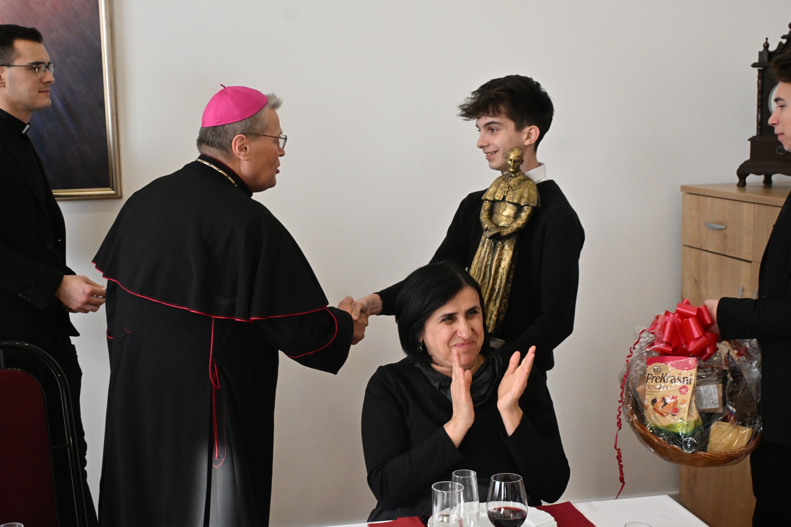 Po završetku misnog slavlja i spomen fotografiranja, uslijedilo je bratsko zajedništvo okupljenih oko obiteljskoga stola u sjemenišnoj blagovaonici gdje su predstavnici sjemeništaraca zahvalili nadbiskupu Hraniću na dolasku uručivši mu prigodni poklon sjemenišne zajednice kao svojevrsnu uspomenu na proslavljen Dan sjemeništa. Poklone su potom dobili i svi roditelji sjemeništaraca i vanjski suradnici Sjemeništa u znak pažnje i potpore koju pružaju sjemeništarcima na putu ostvarenja njihova duhovnog poziva.