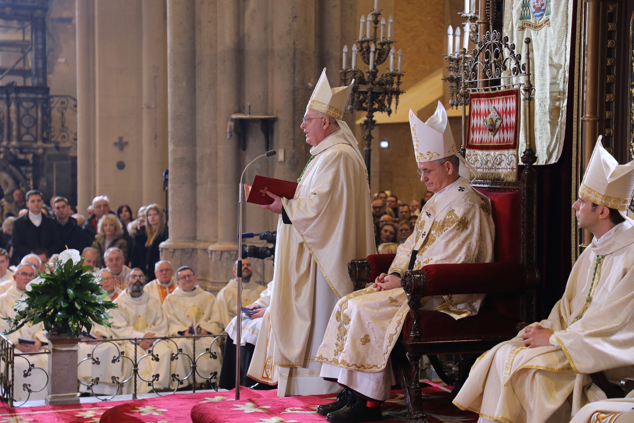 Pročitani su Apostolski nalozi o biskupskom imenovanju: Bulu imenovanja mons. Marka Kovača pomoćnim biskupom zagrebačkim pročitao je pomoćni biskup mons. Ivan Šaško, dok je Bulu imenovanja mons. Vlade Razuma pomoćnim biskupom zagrebačkim pročitao pomoćni biskup mons. Mijo Gorski, a nuncij Lingua pokazao ih je okupljenom Božjem narodu.
