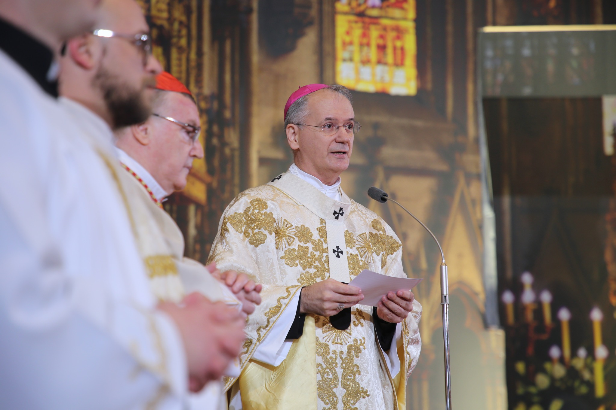 Na početku slavlja sve okupljene pozdravio je nadbiskup Kutleša, posebno pozdravivši ređenike mons. Kovača i mons. Razuma, koji su “pozvani služiti kao pomoćni biskupi Zagrebačke nadbiskupije. Svetome Ocu od srca zahvaljujem na ovom dragocjenom daru”, naglasio je Nadbiskup. Zahvalio je njihovim obiteljima koje su ih pratile na putu vjere, rasta i sazrijevanja u službi Crkve. “Hvala vam na vašoj tihoj, ali dragocjenoj potpori, na molitvi i žrtvi po kojima je Bog u njihovim životima mogao ostvariti svoj naum”, kazao je mons. Kutleša.