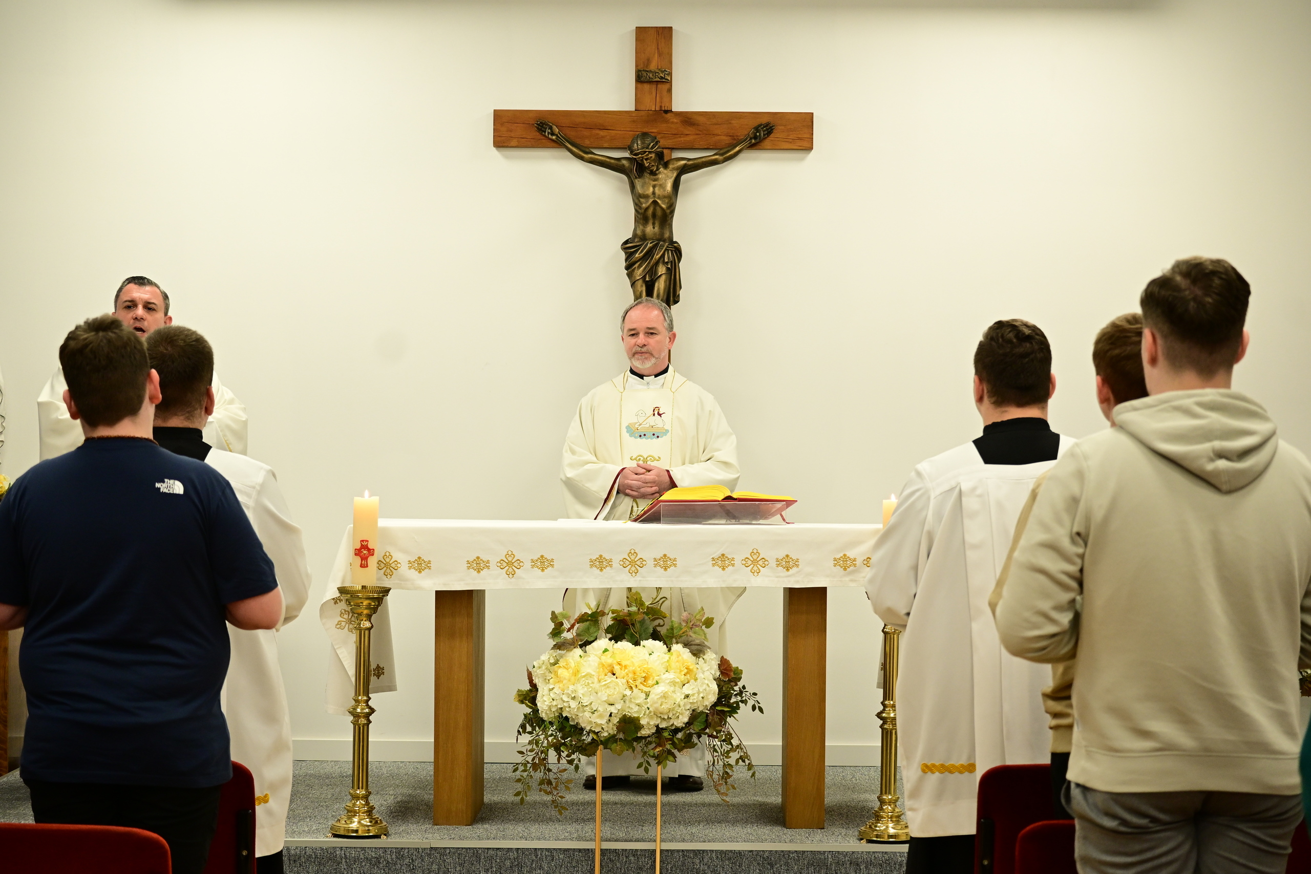 Misno slavlje započelo je u 18 sati u privremenom bogoslužnom prostoru svečane sjemenišne dvorane, a u koncelebraciji vlč. Koretiću bili su sjemenišni odgojitelji preč. Matija Pavlaković i vlč. Matko Filipović.